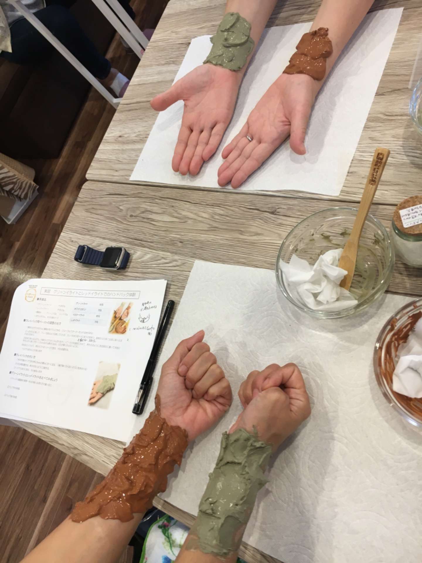 各クレイの特徴や、エンヴェロップメント、クレイフットバス、セルフフェイスパックの実習付きで、体感しながら使用方法や注意事項について学べます。